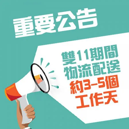 雙11物流配送量暴增,各家物流運輸時間約3~5個工作天,且無法指定到貨時間,請見諒!!