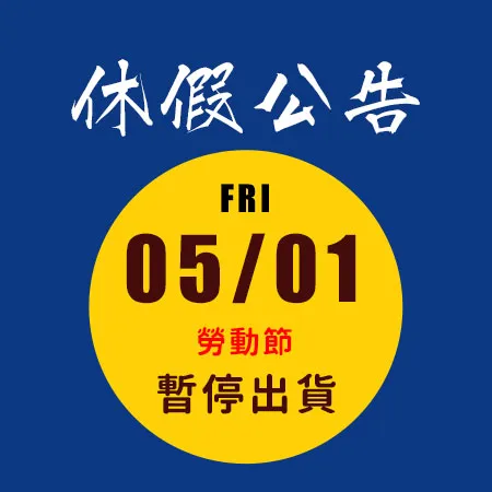5/1~5/3為勞動節連續假期暫停出貨與客服,訂單則順延於5/4依序安排出貨。