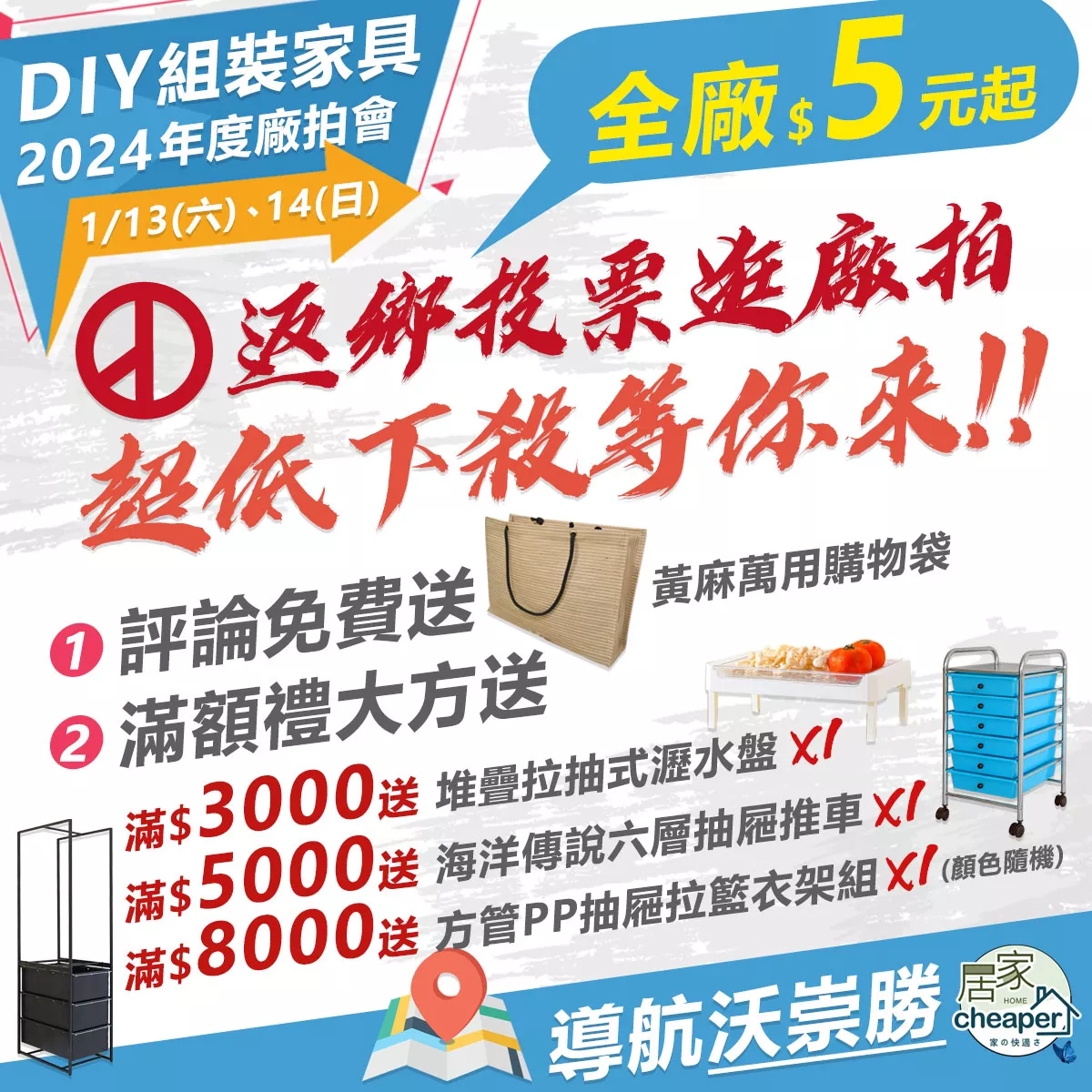【返鄉投票逛廠拍 2024居家cheaper年度廠拍盛會】