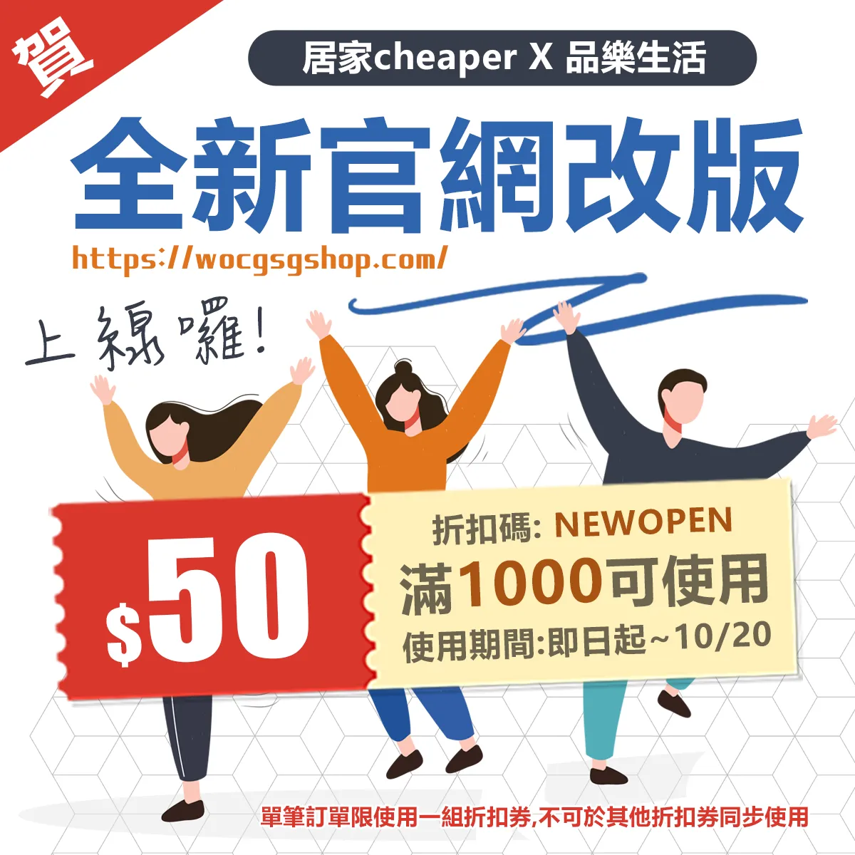 【全新官網改版上線囉】 全新的面貌,全新的購物體驗,更便利的操作介面 多款超夯新品陸續上市, 賀全新官網上線,即日起~10/20止, 消費滿1000元,輸入折扣碼 「 NEWOPEN 」 現折50元 單筆訂單限使用單張折價券,不可與其他優惠券同時使用, 新介面上線,如有任何問題請與客服聯繫,謝謝~