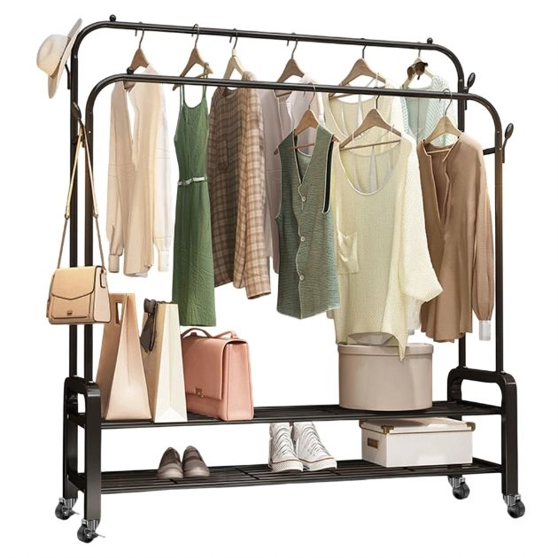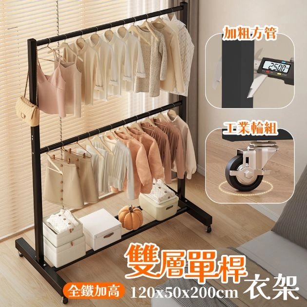 加寬150CM雙桿雙層移動式加粗衣架 HA15059-BK