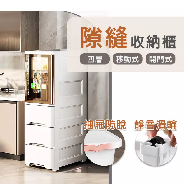 面寬25CM四層移動式帶門縫隙收納櫃(附輪組)