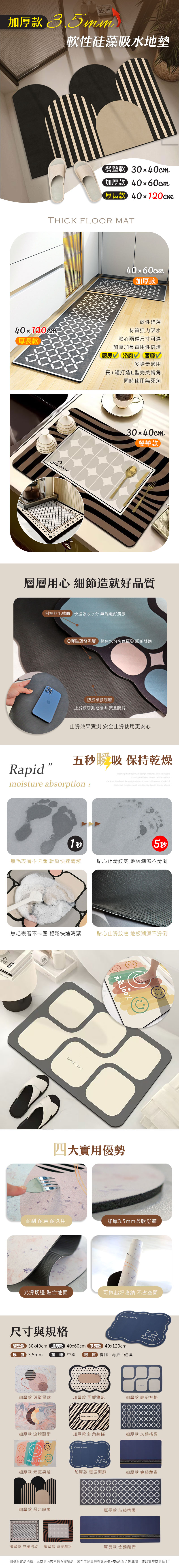 加厚軟性硅藻吸水地墊 餐墊 30x40cm | 40x60cm | 40x120cm