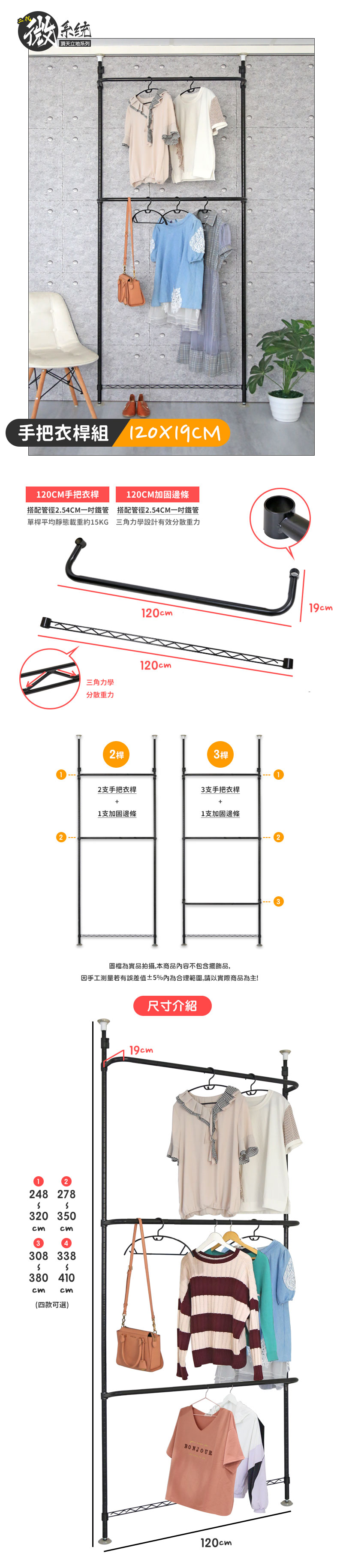 二代微系統頂天立地120X19CM手把衣桿吊衣架組