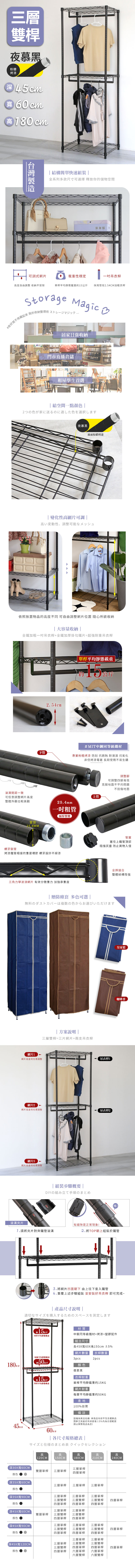 45X60X180CM 三層雙桿吊衣架組贈布套