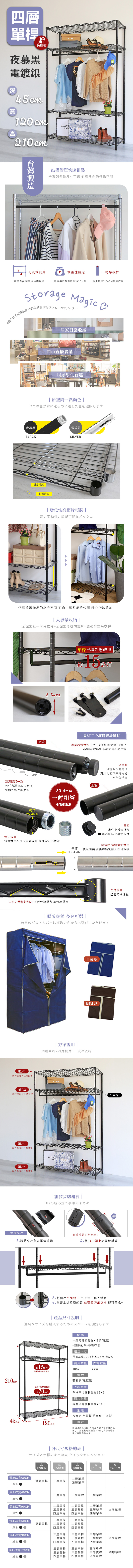 45X120X210CM 四層吊衣架組贈布套 烤漆霧黑│明亮電鍍
