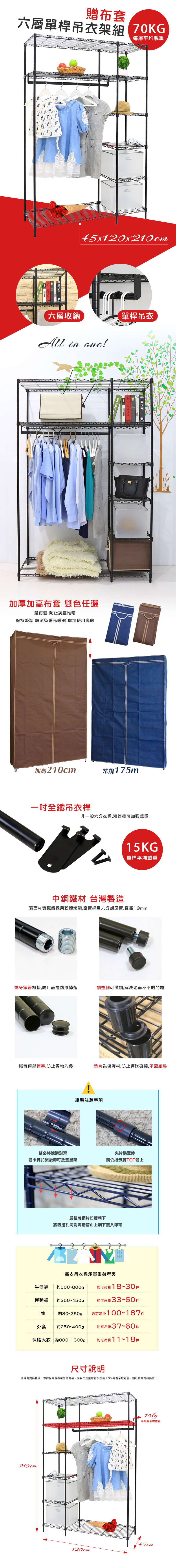 黑惡魔六層吊衣架組贈布套 45X120X210CM