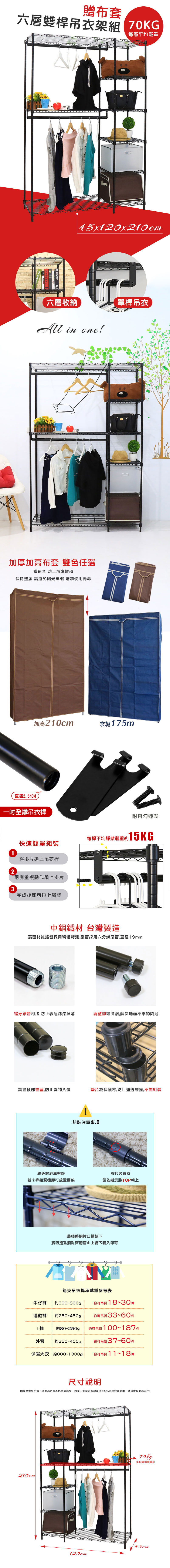 黑惡魔六層雙桿吊衣架組贈布套 45X120X210CM