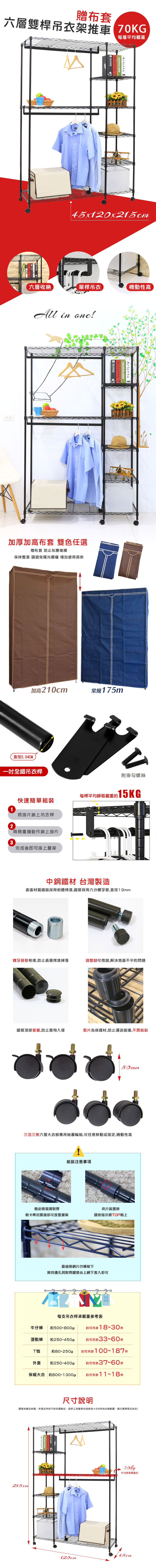 黑惡魔六層雙桿吊衣架組附輪贈布套 45X120X215CM