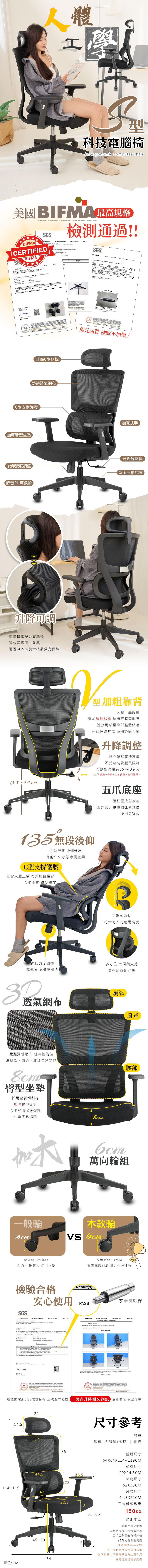 S型人體工學科技電腦椅 630A-DP