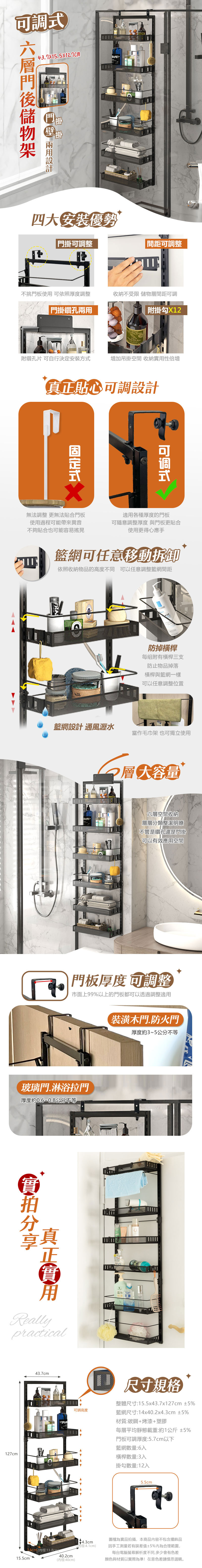 可調式六層門後儲物架
