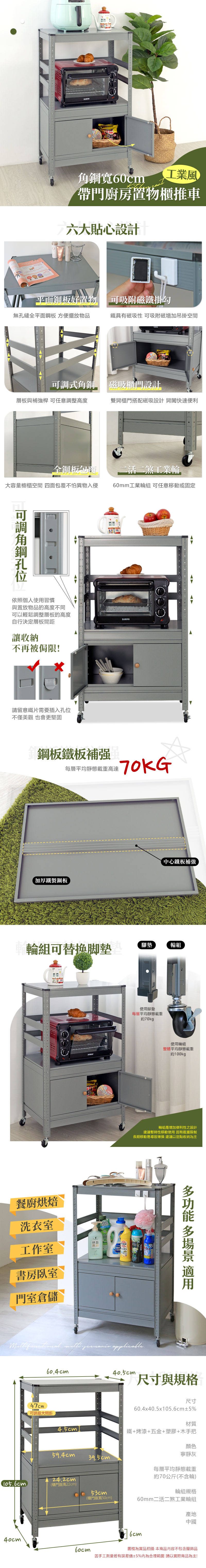 豪華版多功能半網廚房收納架/推車(菱形網/厚鐵框)