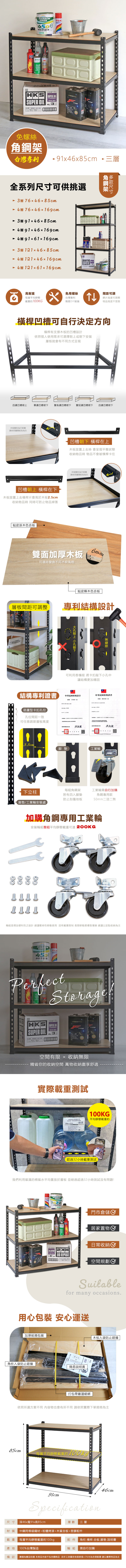 MIT專利免螺絲角鋼三層架 91X46X85CM (9號)
