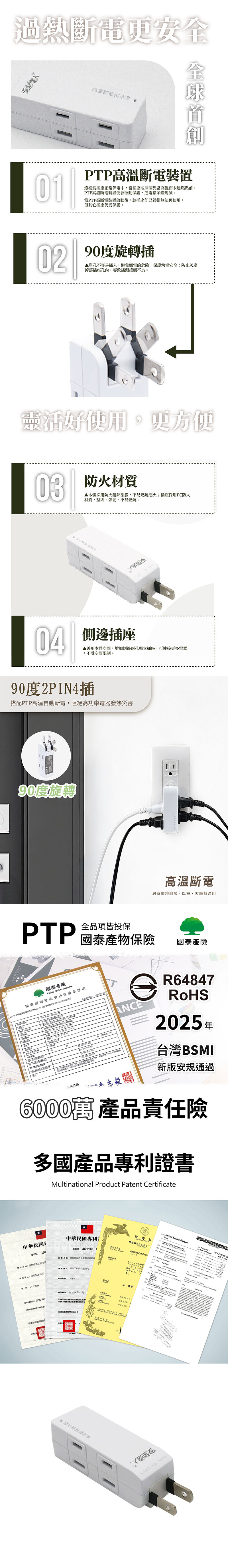 PTP強效防火 4插2P插座 R-15 4插座 分接器