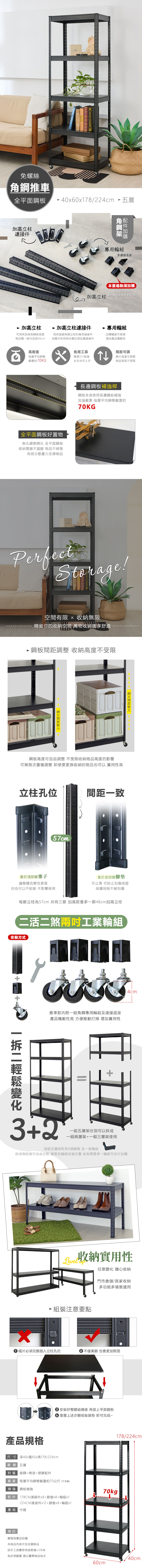 40X60X178/224CM 免螺絲五層角鋼附輪