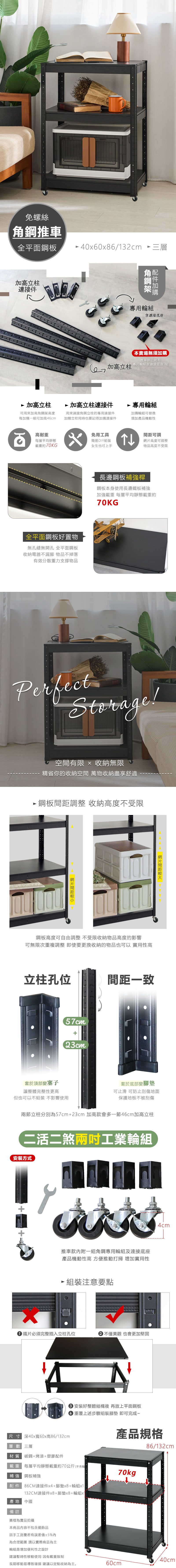 40X60X86/132CM 免螺絲三層角鋼附輪
