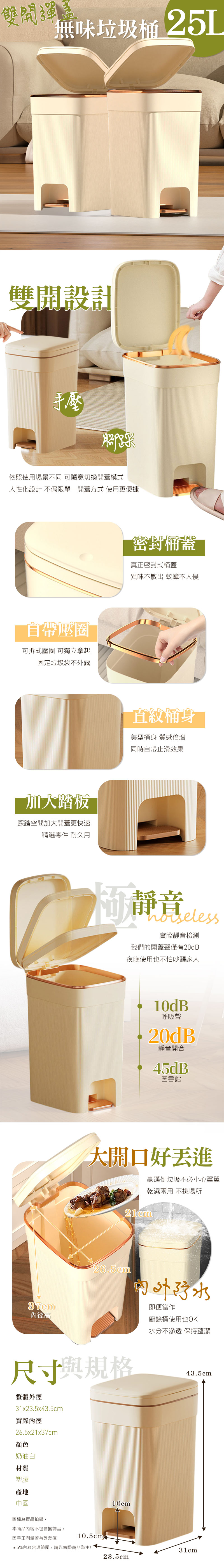 25L 雙開彈蓋無味垃圾桶 TG2428-25LWT