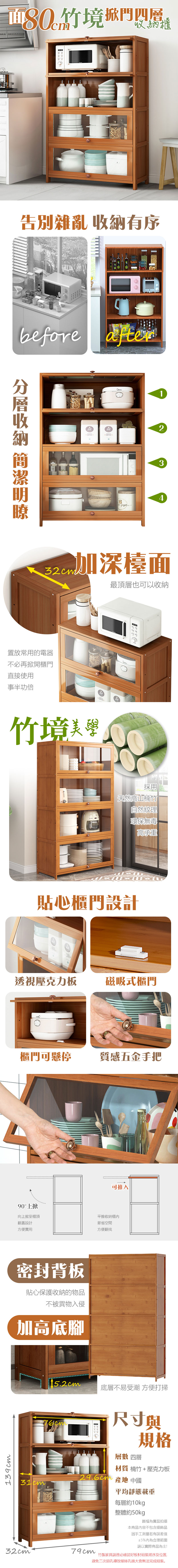 面80竹境掀門四層收納櫃 TD8033-4BO