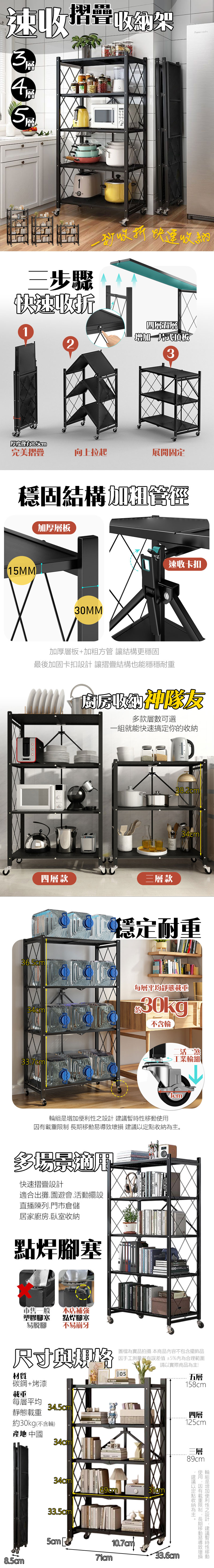 可拆調卡扣式三板一籃收納推車 SL4035-4BK