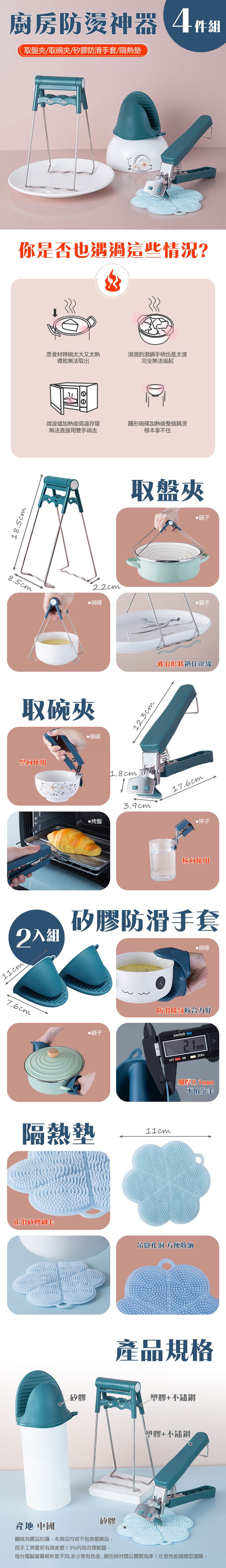 廚房防燙神器四件組 | 取碗夾 取盤夾 隔熱手套 隔熱墊
