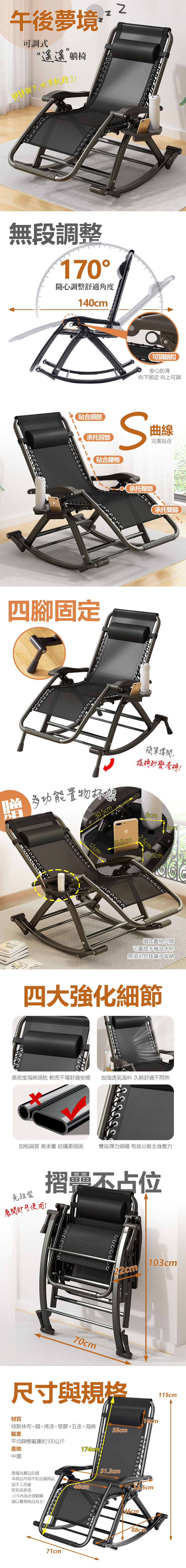 午後夢境可調式遙遙躺椅(附多功能置物杯架) CL70-118