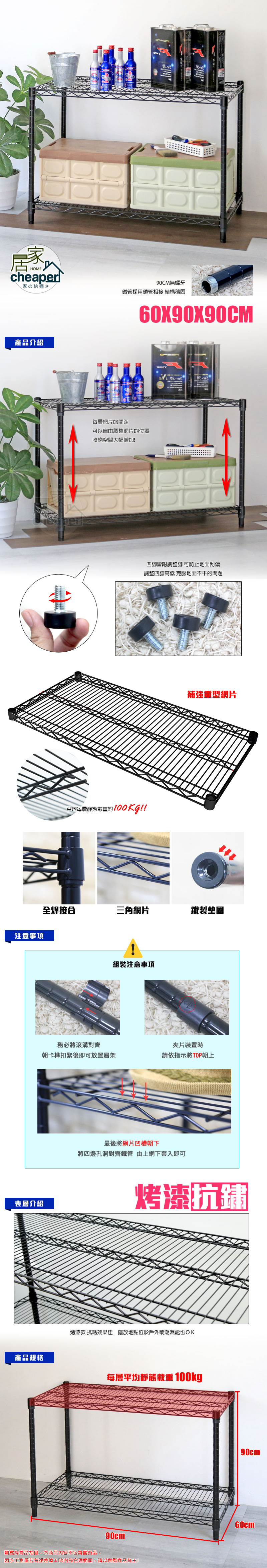 荷重型烤漆雙層架 60X90X90CM
