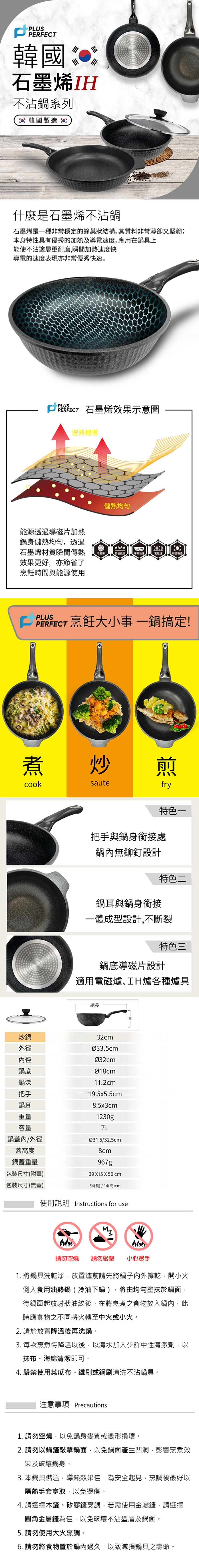 PERFECT 韓國石墨烯IH炒鍋 32CM (附蓋) SJ-0530032