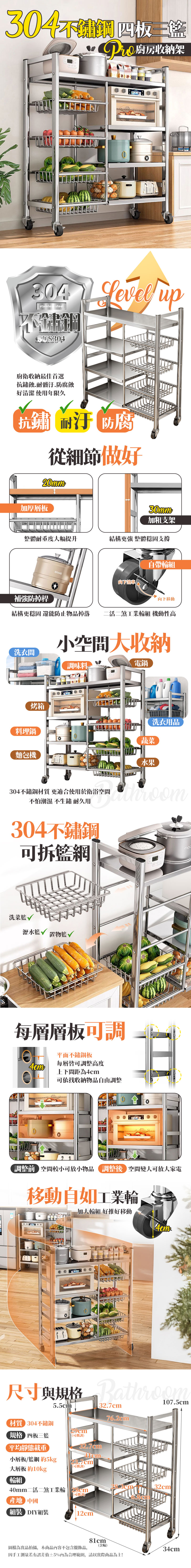 尊鋼Pro304不鏽鋼四板三籃電器置物架 L07-80108-3SD