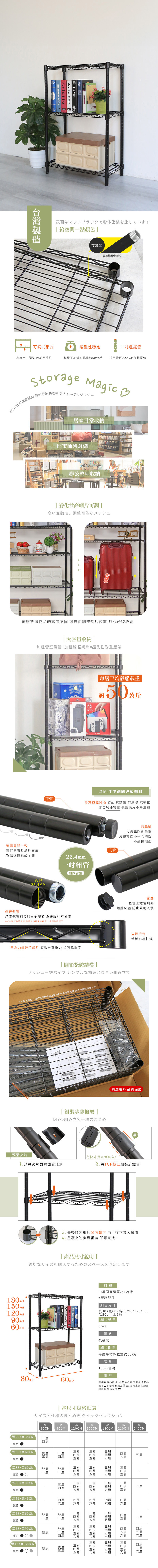 30X60X60/90/120/150/180CM 三層架 烤漆霧黑