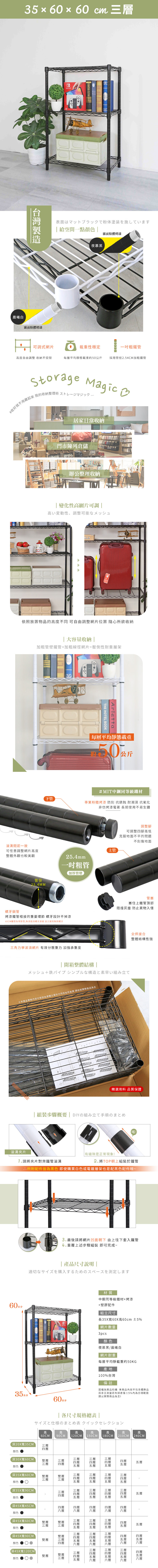 35X60X60CM 三層架 烤漆霧黑│烤漆亮白