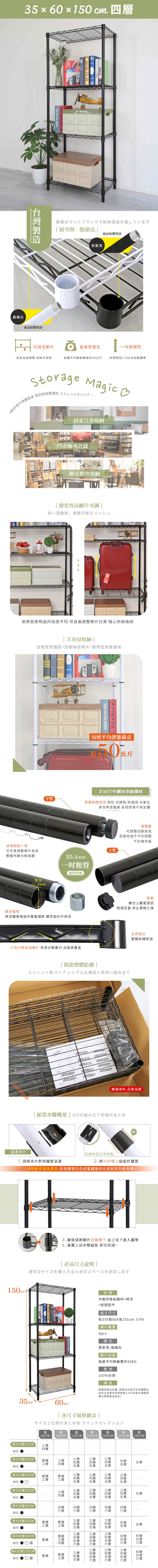 35X60X150CM 四層架 烤漆霧黑│烤漆亮白