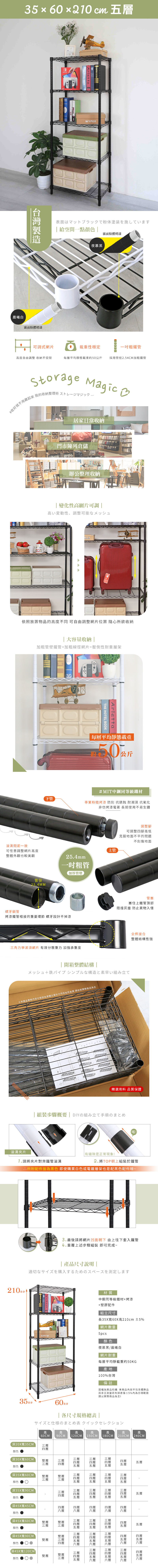 35X60X210CM 五層架 烤漆霧黑│烤漆亮白