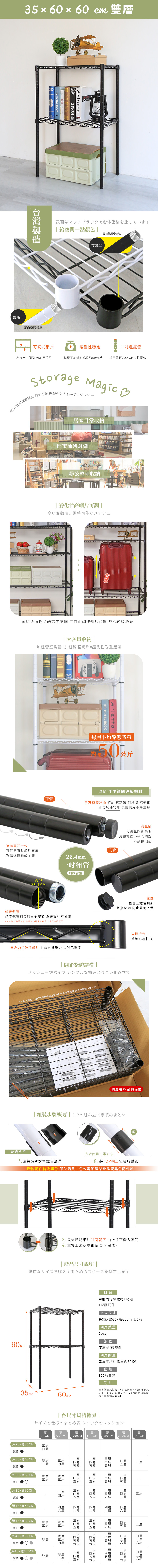 35X60X60CM 二層架 烤漆霧黑│烤漆亮白