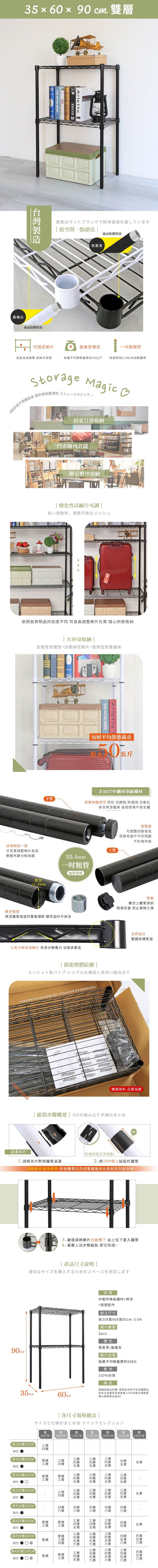 35X60X90CM 二層架 烤漆霧黑│烤漆亮白