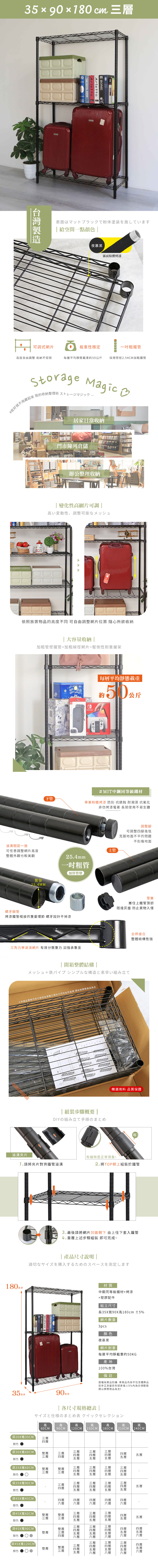 35X90X180CM 三層架 烤漆霧黑