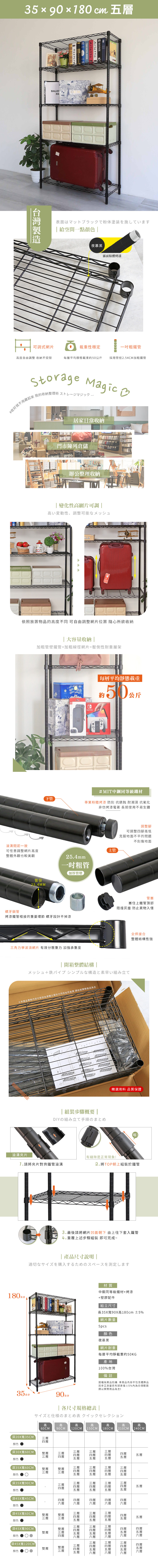 35X90X180CM 五層架 烤漆霧黑