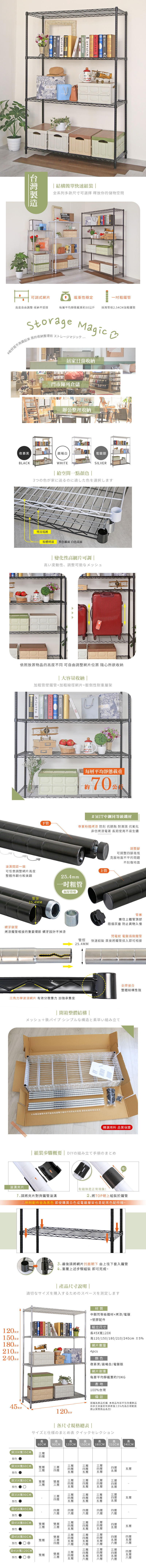 45X120X120/150/180/210/240CM 四層架 烤漆霧黑│烤漆亮白│明亮電鍍