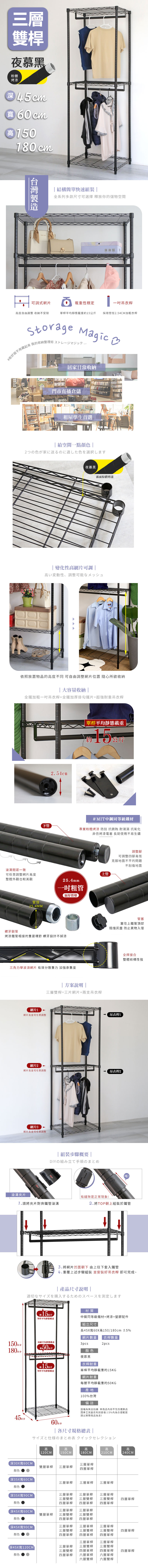 45X60X150/180CM 三層雙桿吊衣架組