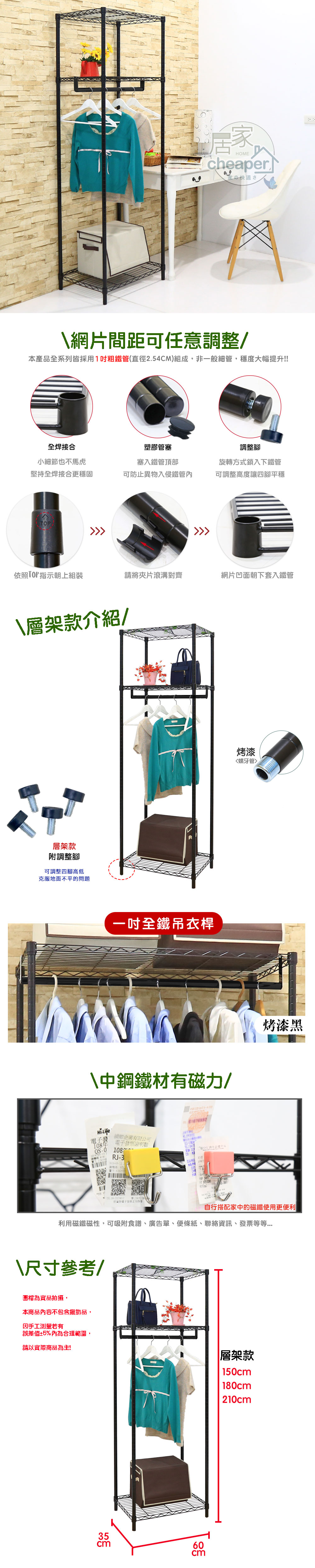 三層吊衣架組烤漆黑 35X60X150│180│210CM