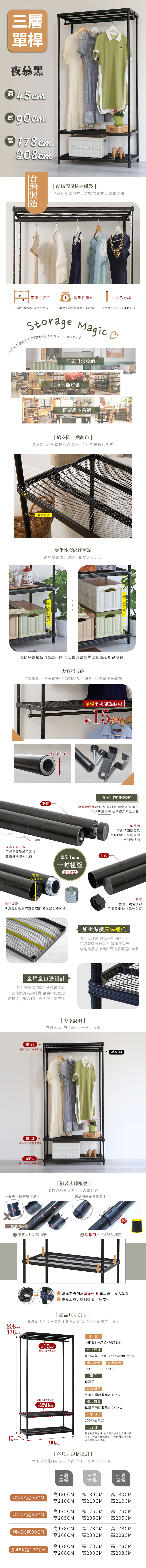 菱形網三層單桿衣架組 45X90X178│208CM