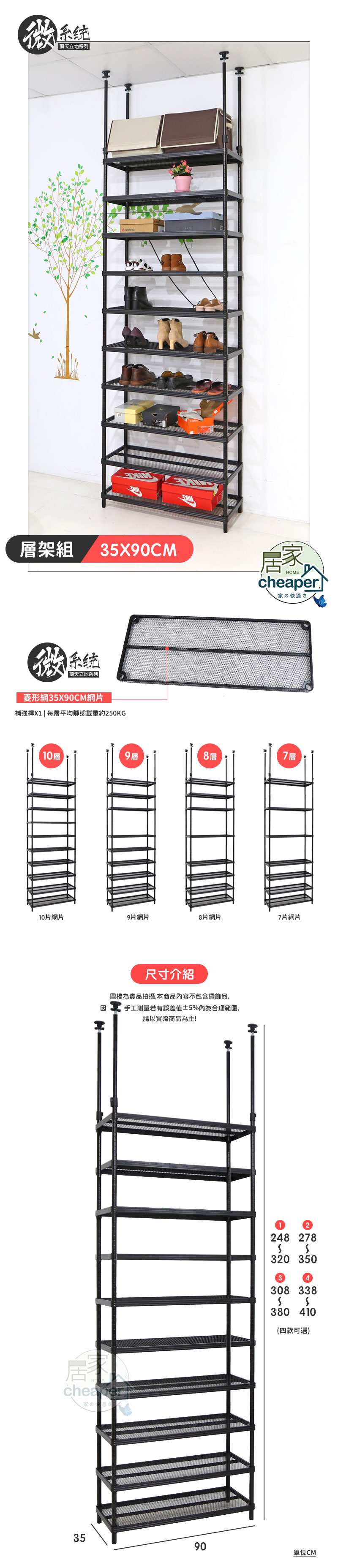 微系統頂天立地菱形網收納架 35X90CM層架組