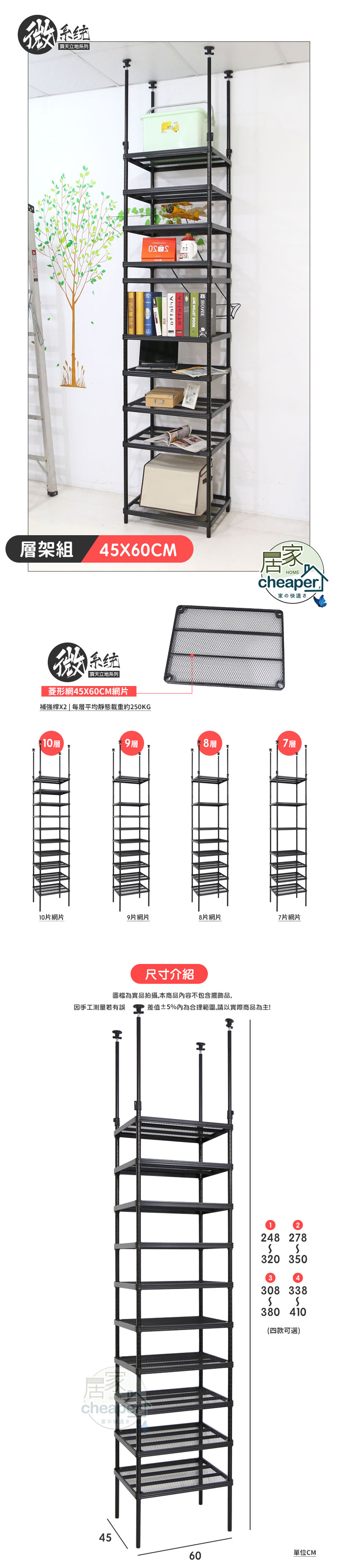 微系統頂天立地菱形網收納架 45X60CM層架組