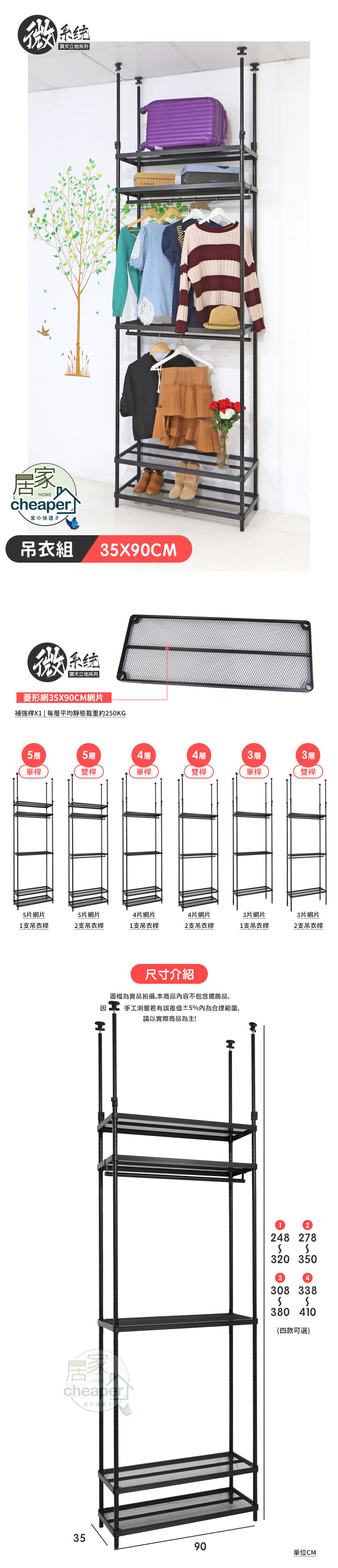 微系統頂天立地菱形網收納架 35X90CM吊衣組