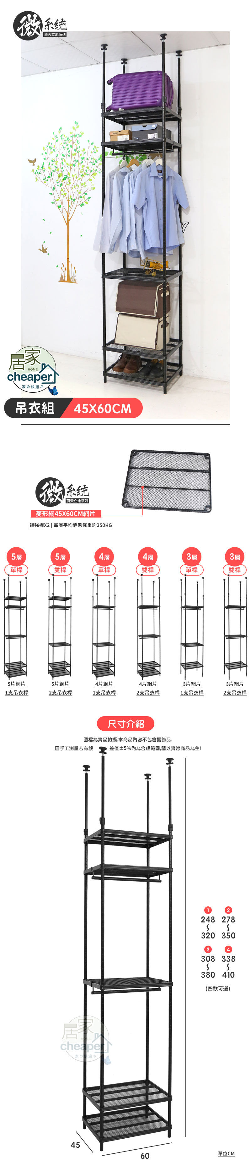 微系統頂天立地菱形網收納架 45X60CM吊衣組
