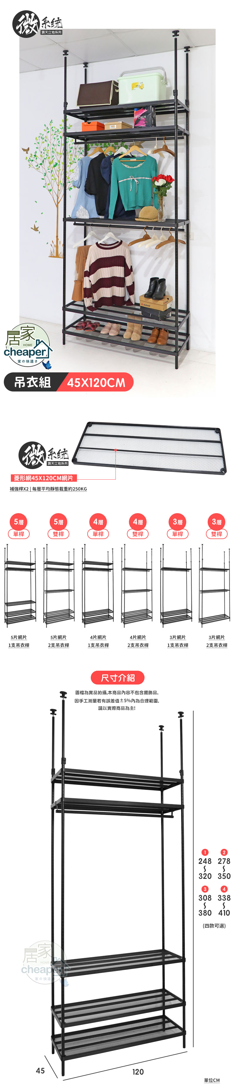 微系統頂天立地菱形網收納架 45X120CM吊衣組